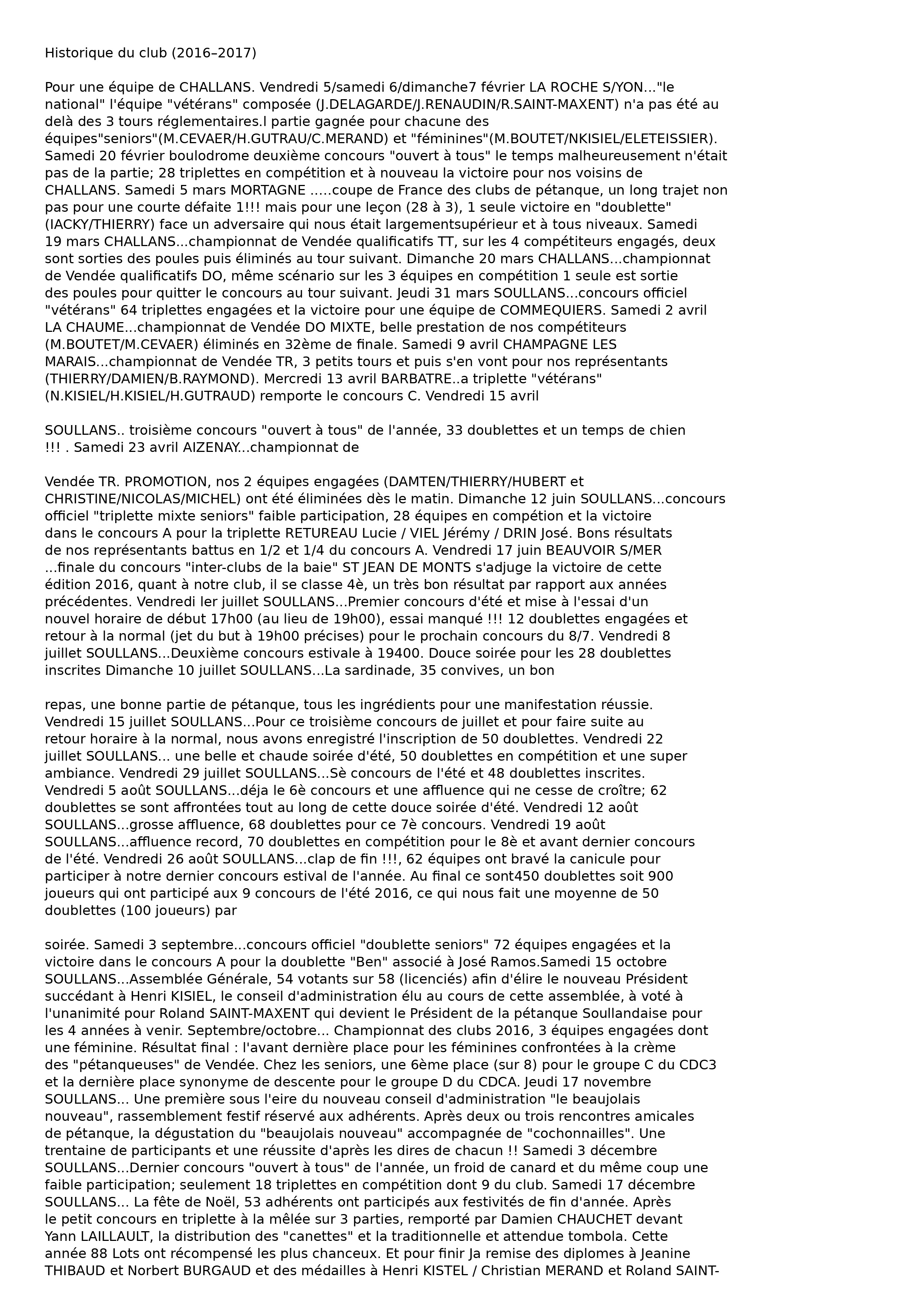 HISTORIQUE DU CLUB – de l’année 2016 à l’année 2017