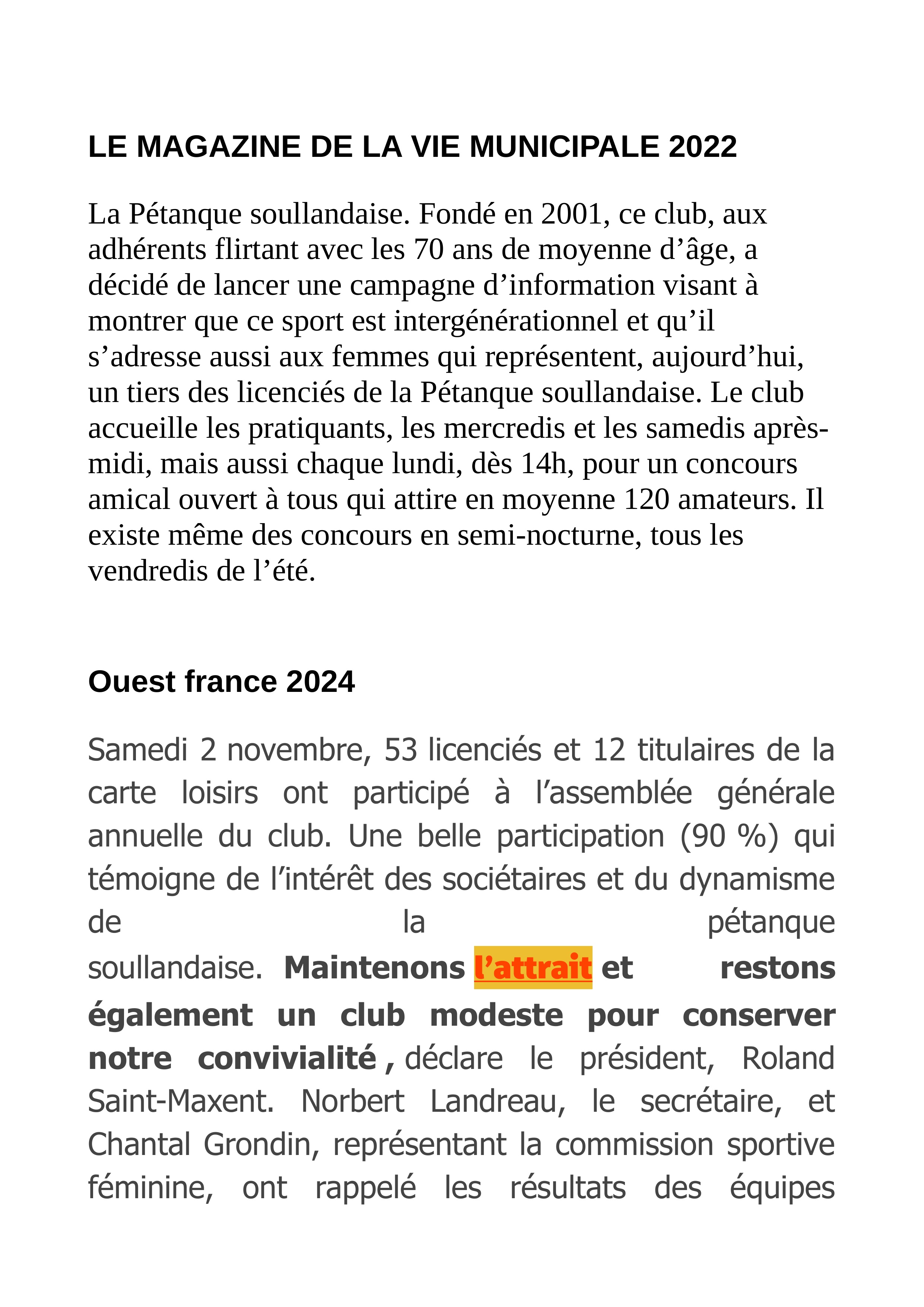 Il était une fois la Pétanque Soullandaise